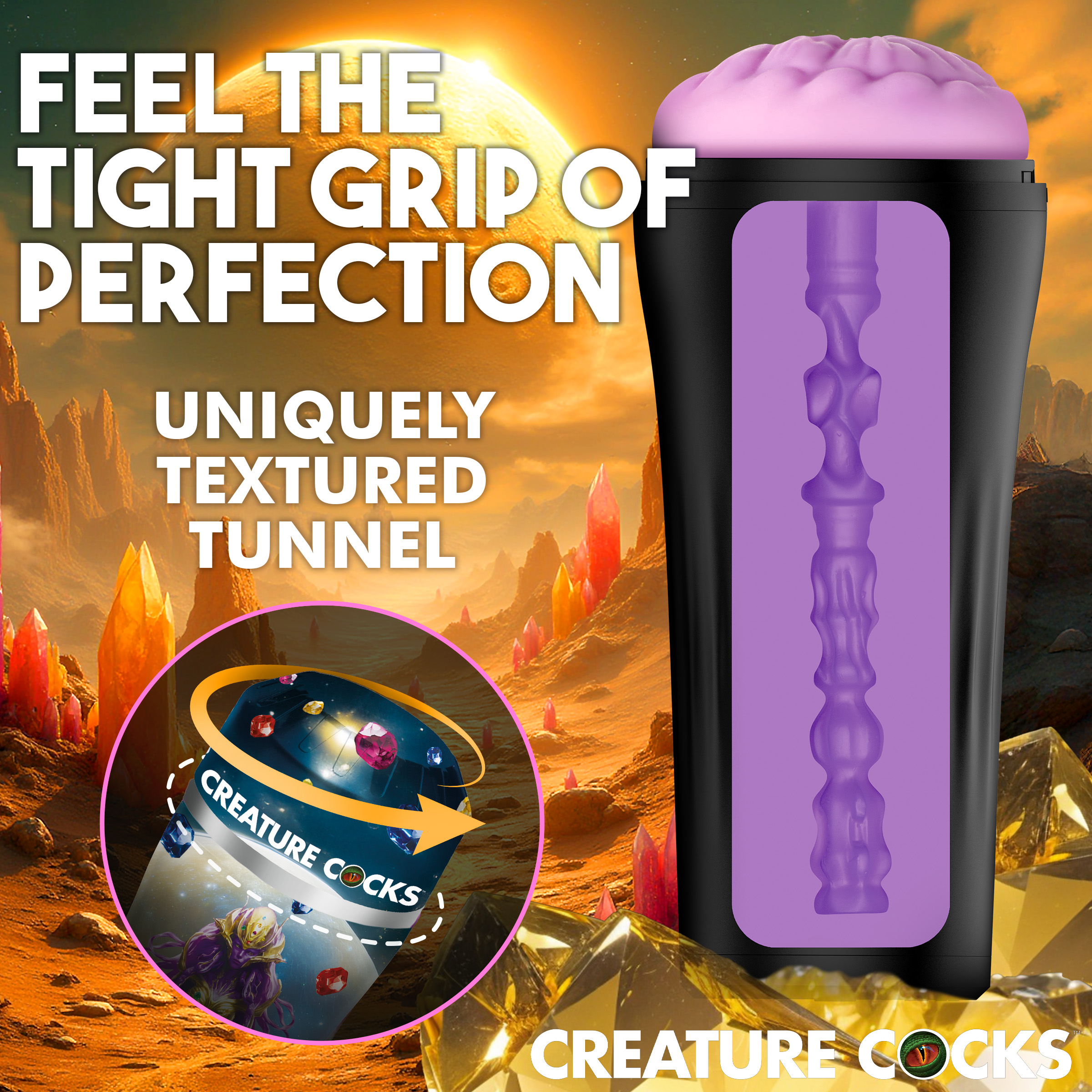 Experience interstellar pleasure with the Thanus Ass Stroker! This fantasy stroker lets you imagine a world-destroying femme while enjoying her tight, purple, alien hole. The textured rubber interior offers sensational grooves and flexibility for a unique experience. Encased in a firm plastic case, it’s easy to grip and well-protected. Clean-up is a breeze thanks to the removable, open-ended design — just wash with warm water and mild soap. Adjust the silicone plug at the base to control suction and customize your experience. Explore new realms of ecstasy today!